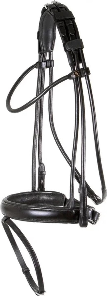Medium wijde aansnoerneusriem, rond gebombeerd , zacht gevoerd, voorzien van een gevoerde kaakbeschermer.