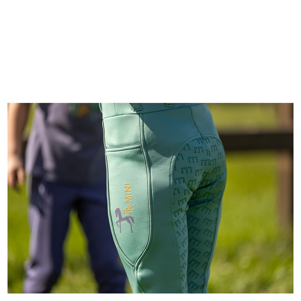 Deze perfect zittende rijlegging is gemaakt van 4-way stretch materiaal dat goed aansluit op de huid, goed in vorm blijft en voor veel bewegingsvrijheid zorgt. De elastische tailleband is voorzien van voldoende riemlussen en een kleurrijk rubberen artwork voor een leuke uitstraling. De creatieve siliconen print op het zitvlak zorgt voor grip in het zadel. Daarnaast heeft de tregging twee diepe zakken die geschikt zijn om een mobiele telefoon in te doen. Eén van de twee zakken is opgeleukt met een vrolijke print. De contrastbiezen maken deze tregging een trendy geheel. Maak de outfit compleet met de mooie Mini shirts zodat dat de kleine ruiter geheel in stijl en vol plezier naar de manege gaat.