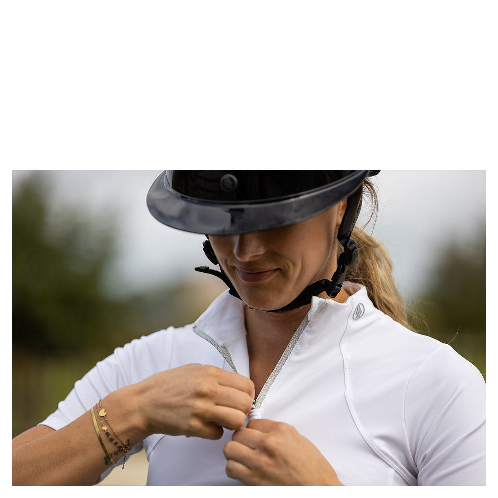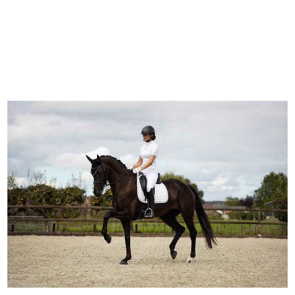 Dit elegante wedstrijdshirt valt op door de zilveren details zoals de rits en de mooie, hoge kraag. De stof is vochtregulerend en sneldrogend wat het draagcomfort optimaal maakt. Omdat het een stretchshirt is, heeft het een prettige, nauwsluitende pasvorm. De rits is voorzien van een ritsbeschermer. De zilveren flatlockstiksels en BR-logo's op de mouw en kraag maken het wedstrijdshirt op stijlvolle wijze af.