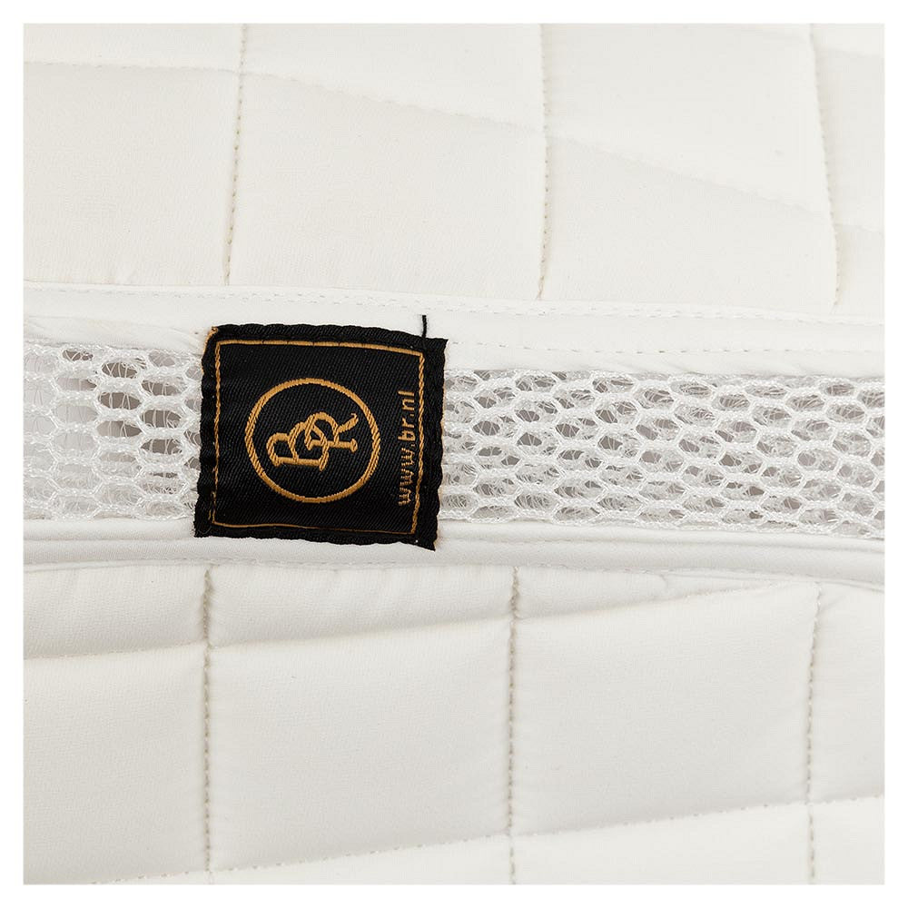 Dit wedstrijdzadeldek met glanzende roségouden contrastbies is niet alleen mooi om te zien, maar ook nog zeer comfortabel voor je paard. De anatomisch gevormde airflow rugnaad zorgt voor een perfecte pasvorm en bevordert de luchtdoorstroming. Daarnaast is het zadeldek gevoerd met vochtregulerend Coolplus materiaal zodat de paardenrug droog blijft.