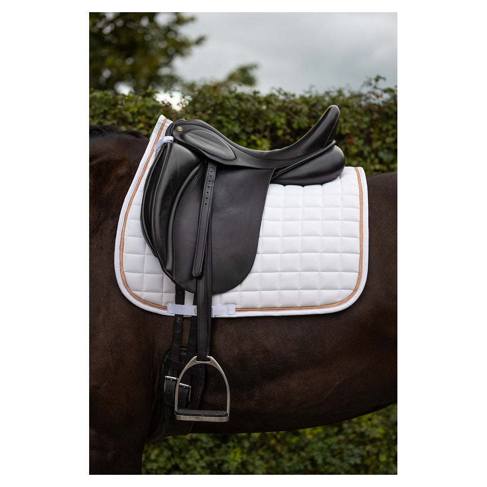 Het Liverpool zadeldek heeft een sierlijke vierkante stepping en is afgewerkt met een roségouden contrastbies met glitter.