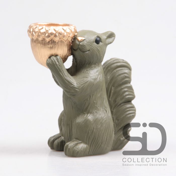 Breng sfeer in huis met deze eekhoorn met waxine houder! Gemaakt van stevig cement en afgewerkt in een stijlvolle olijfgroene kleur, past dit unieke woonaccessoire perfect in elk interieur. Met zijn afmeting van 14,5 x 8,5 x 16,3 cm is hij compact genoeg om subtiel neer te zetten, maar groot genoeg om echt op te vallen. Zet er een waxinelichtje in en geniet van het warme, speelse licht dat deze charmante eekhoorn verspreidt. Een echte eyecatcher voor op tafel, vensterbank of kast!