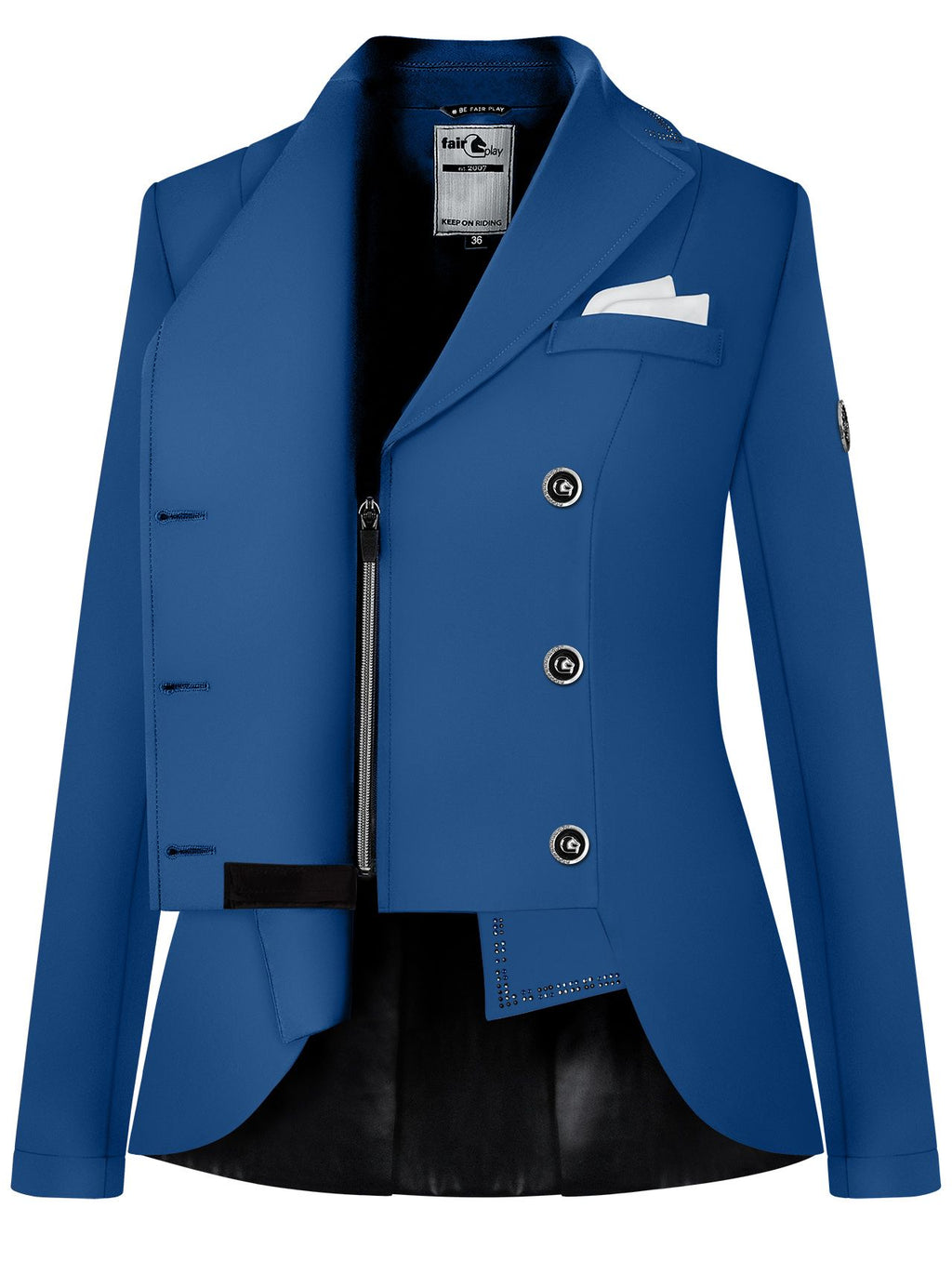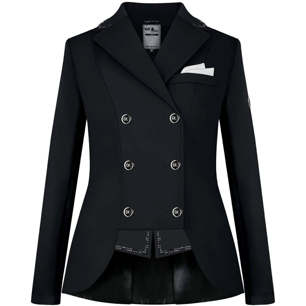 Voor extra luchtcirculatie is de jas voorzien van een mesh voering, terwijl de tails zijn gevoerd met kunstleer voor een verfijnde uitstraling. Oogjes onder de armsgaten zorgen voor ventilatie, en het decoratieve Fair Play logo op de mouw voegt een subtiele branding toe. Kies voor tijdloze elegantie en vrouwelijke flair met deze prachtige korte slipjas.