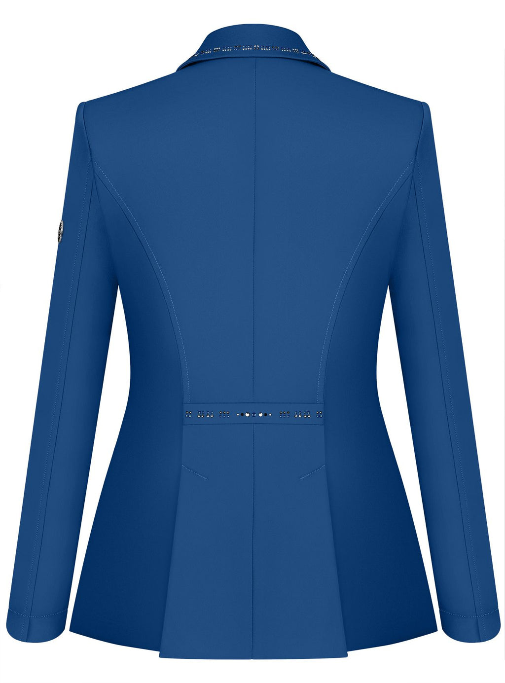 De jas is gedecoreerd met strass-steentjes op de kraag, punten en op de achterkant voor een subtiel vleugje glamour. Compleet met een wit satijnen pochet en verwisselbare punten, biedt deze jas veelzijdigheid en stijl.