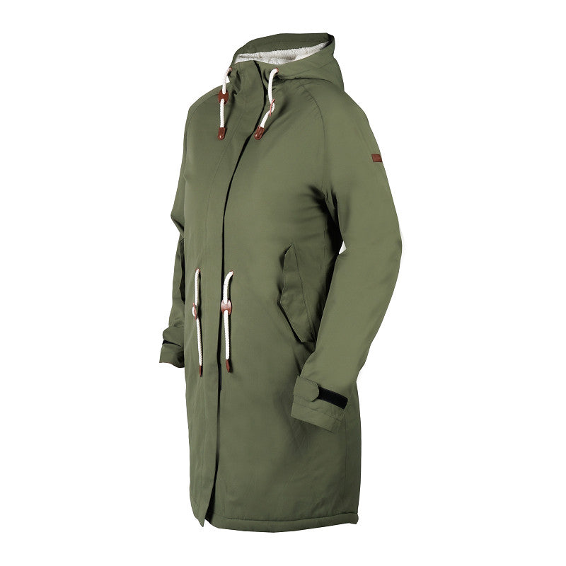 Praktisch en vervuild regenparka van hoogwaardige materialen, uiterst geschikt voor outdoor-activiteiten. Volledig waterdicht en gevoerd met warme teddyvoering in body en capuchon.