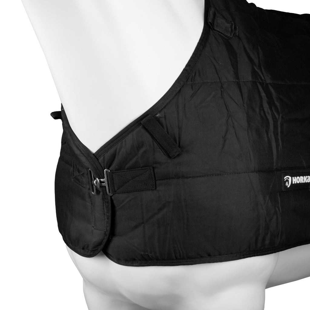 Onderdeken van Zwitsers katoen, zacht en comfortabel voor het paard. Het is een korte slim-fit onderdeken die de rug van het paard bedekt, zodat hij ook onder dekens met hoge loopsplitten past en voldoende ventileert. De deken is uitgevoerd met bevestigingsmogelijkheden aan de voor- en achterkant en het beste te combineren met de HORKA outdoordekens Dime (180336) en Frida (180295).