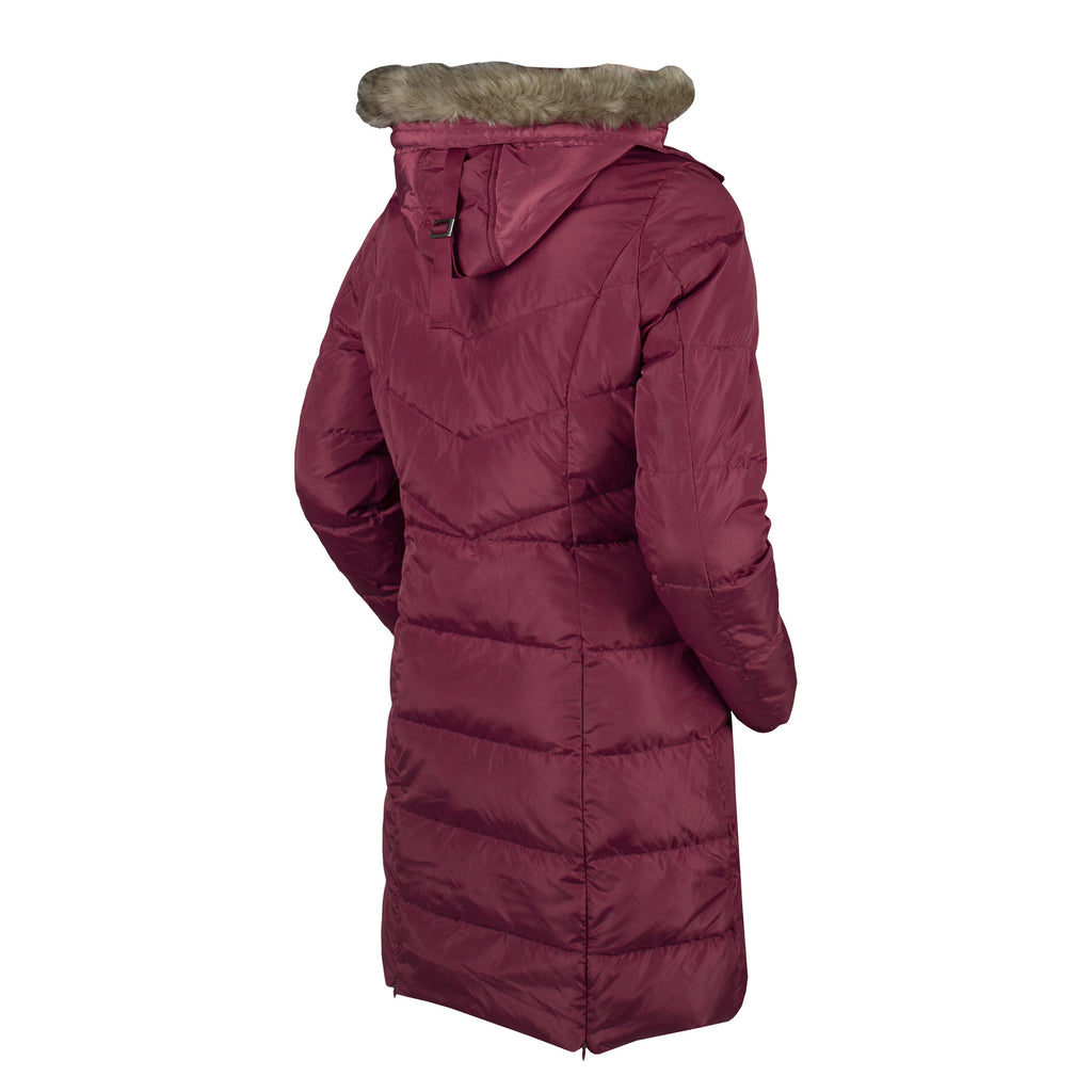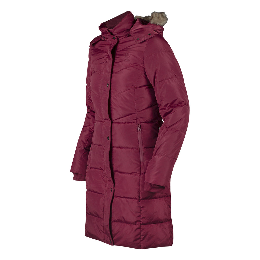 Een warme lange winterjas van extra waterafstotend materiaal. Zowel de capuchon zelf als het imitatiebont op de capuchon is afneembaar. Uitgevoerd met waterafstotende ritsen, en warm fleecebont aan de bovenste helft van de binnenkant. Aan de achterkant heeft de jas splitten, zodat de bewegingsvrijheid niet beperkt wordt.