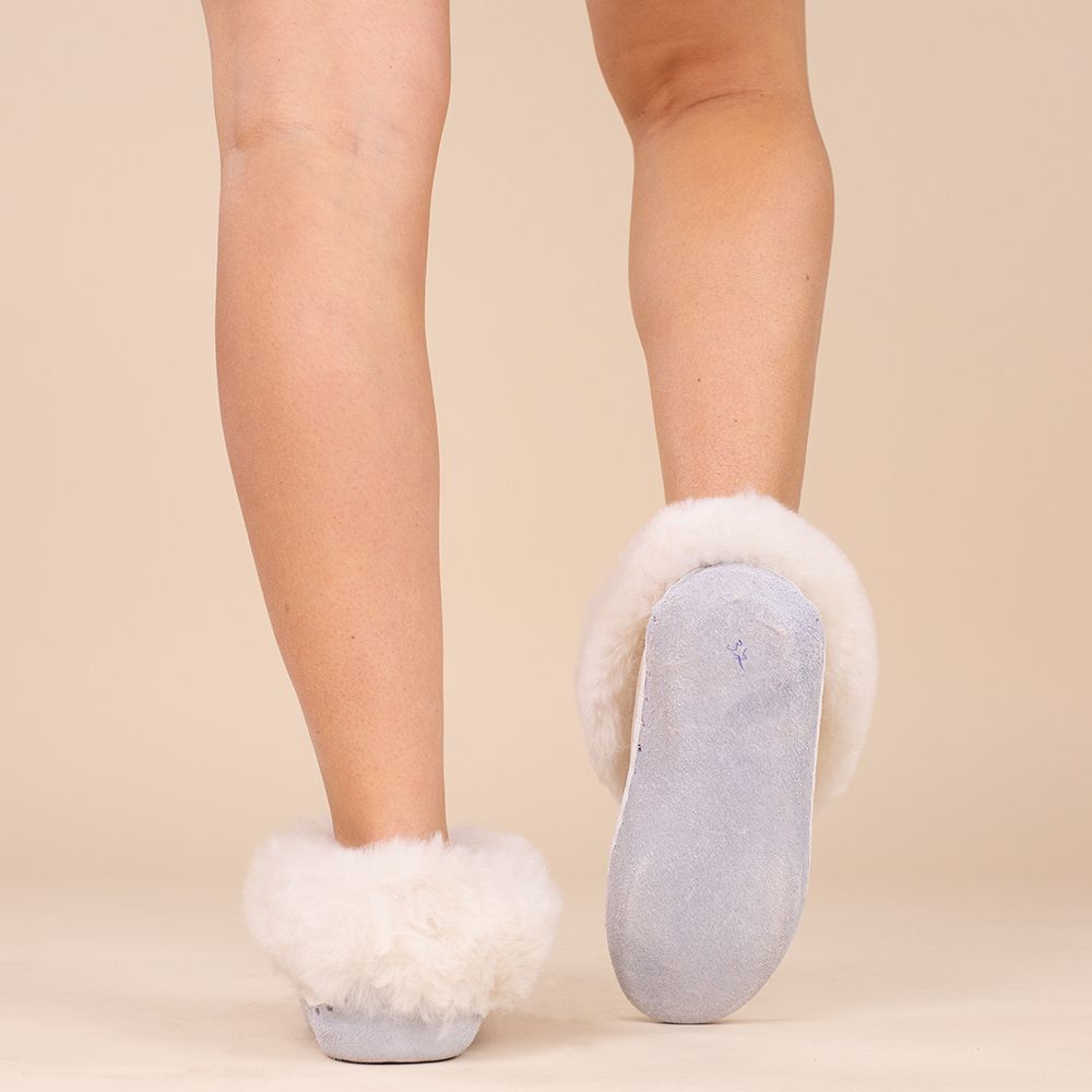 Moonrise wollen sloffen, model Alya - beige, voor dames. Deze sloffen zijn onmisbaar in de kast. Ze zijn gemaakt van 100% wol en hebben een stevige ruwe zool. Dit zorgt voor voldoende grip. De neus is vrolijk bewerkt met gekleurde sierstiksels. De buitenzijde is gemaakt van 100% leer. De binnenzijde is gevoerd met 100% wol. Deze sloffen zijn er ook voor kinderen. Leuk om te twinnen met je mini-me! Let op, de kleur van het wol kan verschillen per paar. Ze worden met de hand gemaakt en krijgen ieder een eigen verfbadje. De sloffen vallen normaal op maat. Twijfel je tussen twee maten? Kies dan de grootste.