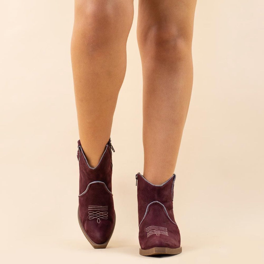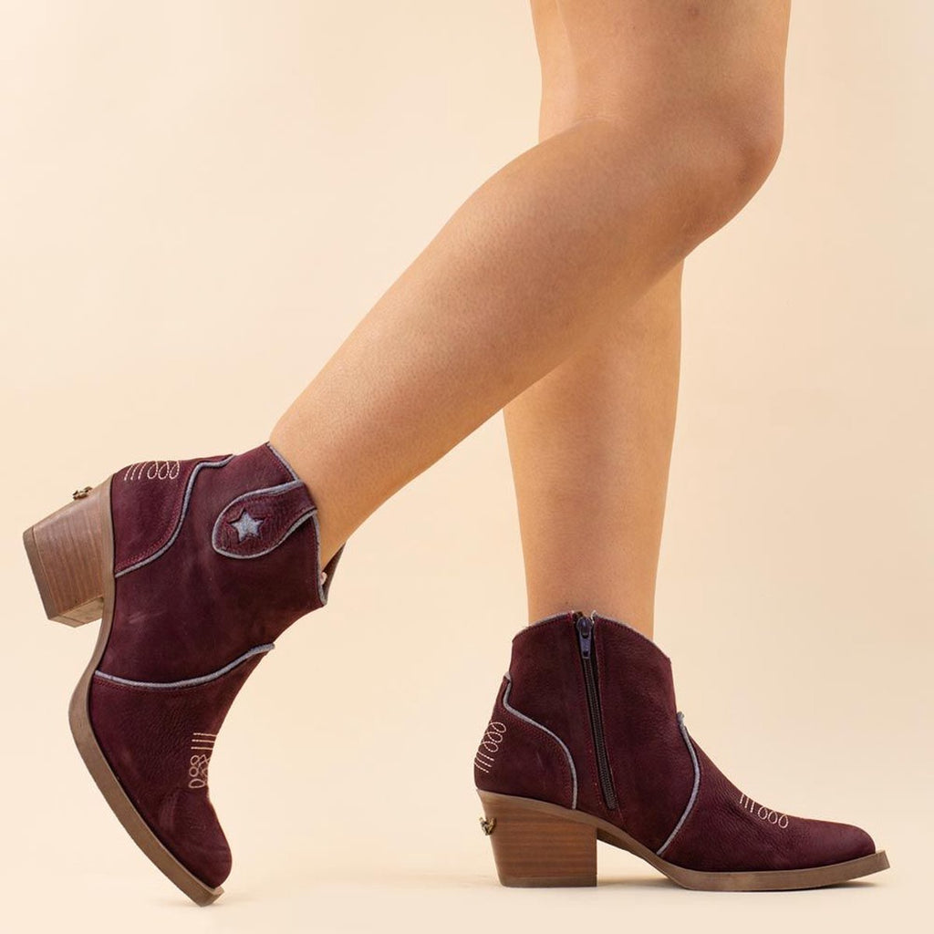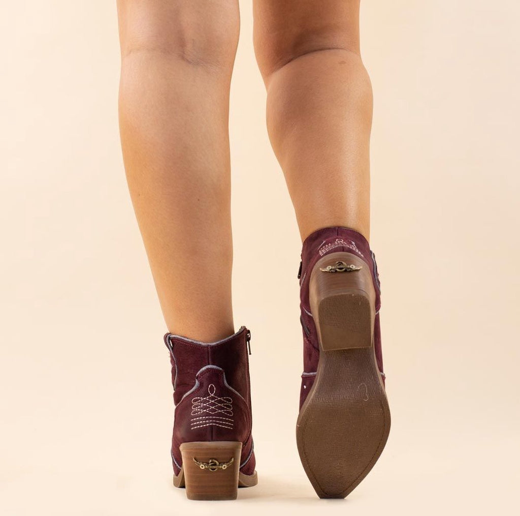 Met deze toffe enkellaarsjes waan jij je meteen helemaal in de Ibiza sfeer. Korte laarsjes van cognac - bruin kleurig suède en afgewerkt met denim details. Aan de zijkant zit een rits voor een makkelijke instap. Deze handgemaakte laarzen uit Spanje zijn gemaakt van 100% leer en hebben ook een lederen binnenzool. Verder heeft de laars een smal toelopende neus en een hoge hak. Deze bohemian laarzen hebben een uitstekend voetbed en goede pasvorm. Nemonic laarzen adviseren wij in de normale schoenmaat te bestellen.