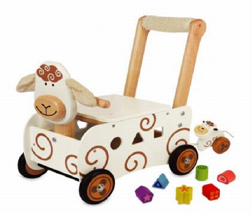 Deze super leuke loopwagen heeft de print van een bruin schaap, maar dat niet alleen hij heeft ook nog een mini trekfiguur! Dat maak het spelen nog leuker.