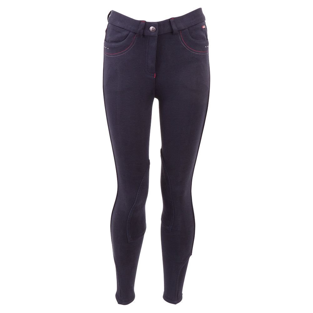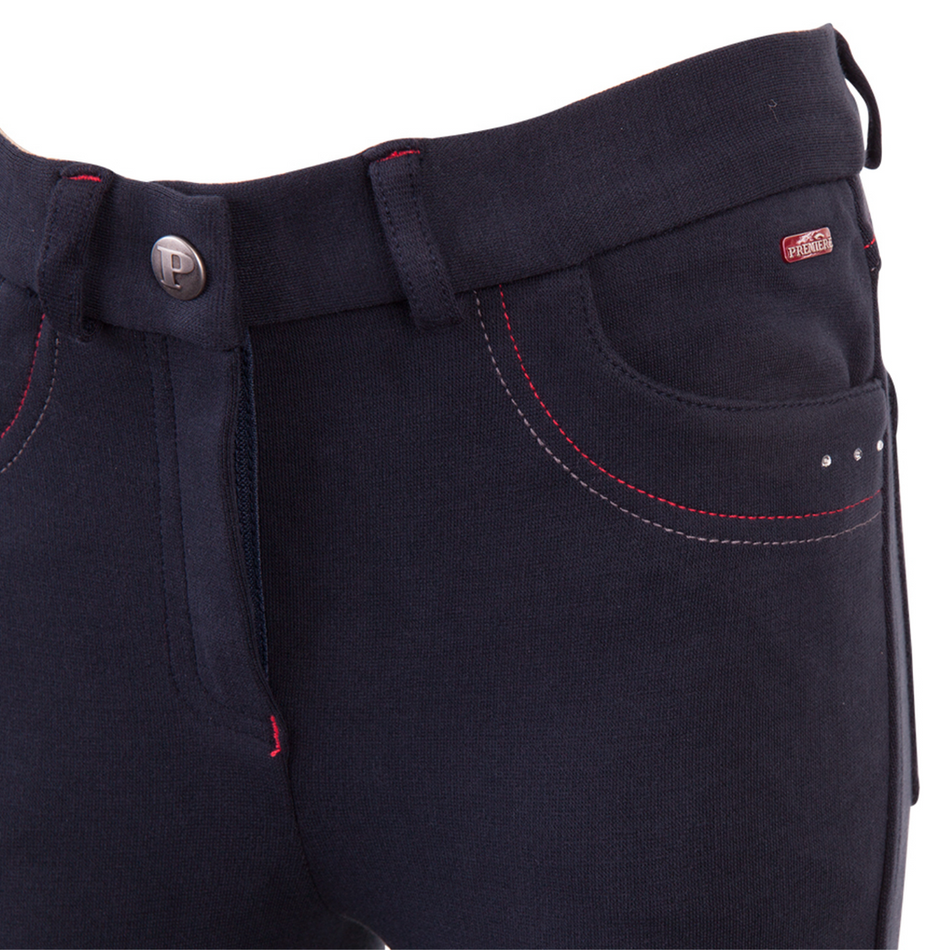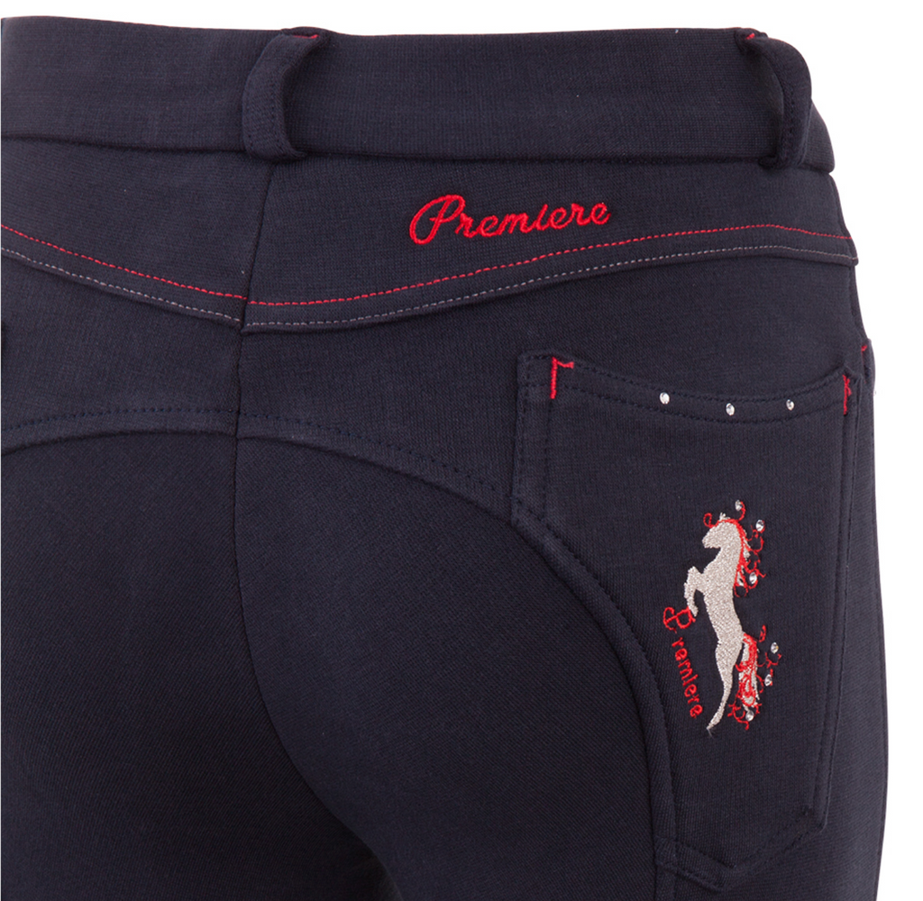 De Premiere Rijbroek Primrose voor kinderen is een absolute must-have voor jonge ruiters. Deze strakke kinderrijbroek is voorzien van stoffen kniestukken voor extra grip tijdens het rijden. De rijbroek heeft twee jeanszakken aan de voorkant en twee opgestikte zakken aan de achterkant. De voor- en achterzakken zijn verfraaid met contraststiksel en imitatiediamanten, wat de broek een stijlvolle uitstraling geeft. Op de rechterachterzak is een paardje geborduurd, dat tevens is afgewerkt met imitatiediamanten. Dit detail maakt de rijbroek extra bijzonder en zal zeker in de smaak vallen bij jonge paardenliefhebbers. De elastische tailleband is voorzien van riemlussen, zodat de broek perfect op maat kan worden gemaakt. De elastische beensluiting staat garant voor optimaal draagcomfort in de rijlaarzen. De rijbroek is gemaakt van 95% katoen en 5% elasthaan, wat zorgt voor een comfortabele pasvorm en goede bewegingsvrijheid tijdens het rijden. Kortom, de Premiere Rijbroek Primrose kinderen stoffen kniestukken is een perfecte keuze voor jonge ruiters die op zoek zijn naar een comfortabele en stijlvolle rijbroek. Bestel deze rijbroek vandaag nog en laat uw kinderen genieten van optimaal rijcomfort! Kenmerken: - Strak model kinderrijbroek - Stoffen kniestukken voor extra grip - Twee jeanszakken aan de voorkant - Twee opgestikte zakken aan de achterkant - Verfraaid met contraststiksel en imitatiediamanten - Geborduurd paardje op de rechterachterzak - Elastische tailleband met riemlussen - Elastische beensluiting voor optimaal draagcomfort - Gemaakt van 95% katoen en 5% elasthaan