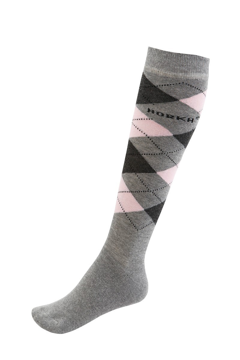Katoenen kniekousen met een extra zacht voetbed. Verkrijgbaar in ruiten- of paarden design.